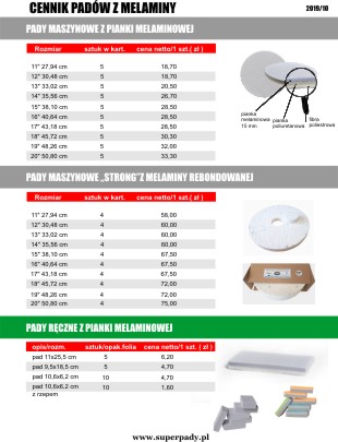 CENNIK PADÓW Z MELAMINY Pady z pianki melaminowej,prasowane i pady ręczne. Pobierz Karta techniczna produktu Pobierz